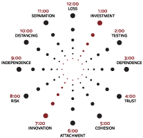 The Team Clock® model was conceived in 1980 as an alternative to the 1965 Tuckman Forming-Storming-Norming-Performing theory. Rather than viewing a team as a time-limited task group with a beginning, middle and end, the Team Clock® model views teams as ever-evolving, living entities that cycle through stages of investment, trust, innovation and distancing, only to re-invest and repeat the cycle.