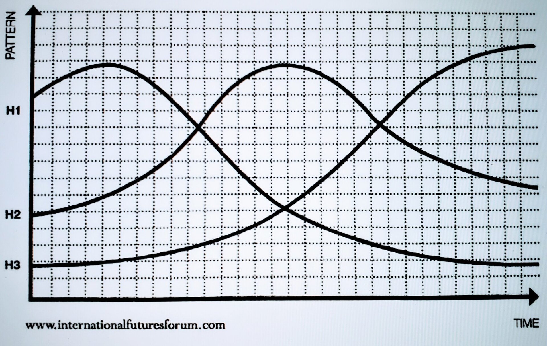 Bill Sharpe from the International Futures Forum uses the 3-Horizons model to describe default mindsets. Past oriented people (H1) tend to see present and future oriented teammates as risky or irrelevant. Present oriented people (H2) tend to see past and future oriented teammates as obstructive or impractical. Future oriented people (H3) tend to see past and present oriented teammates as dinosaurs or compromising.